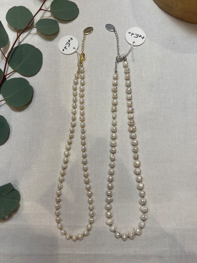 淡水パール×メタル ネックレス ゴールド/シルバー