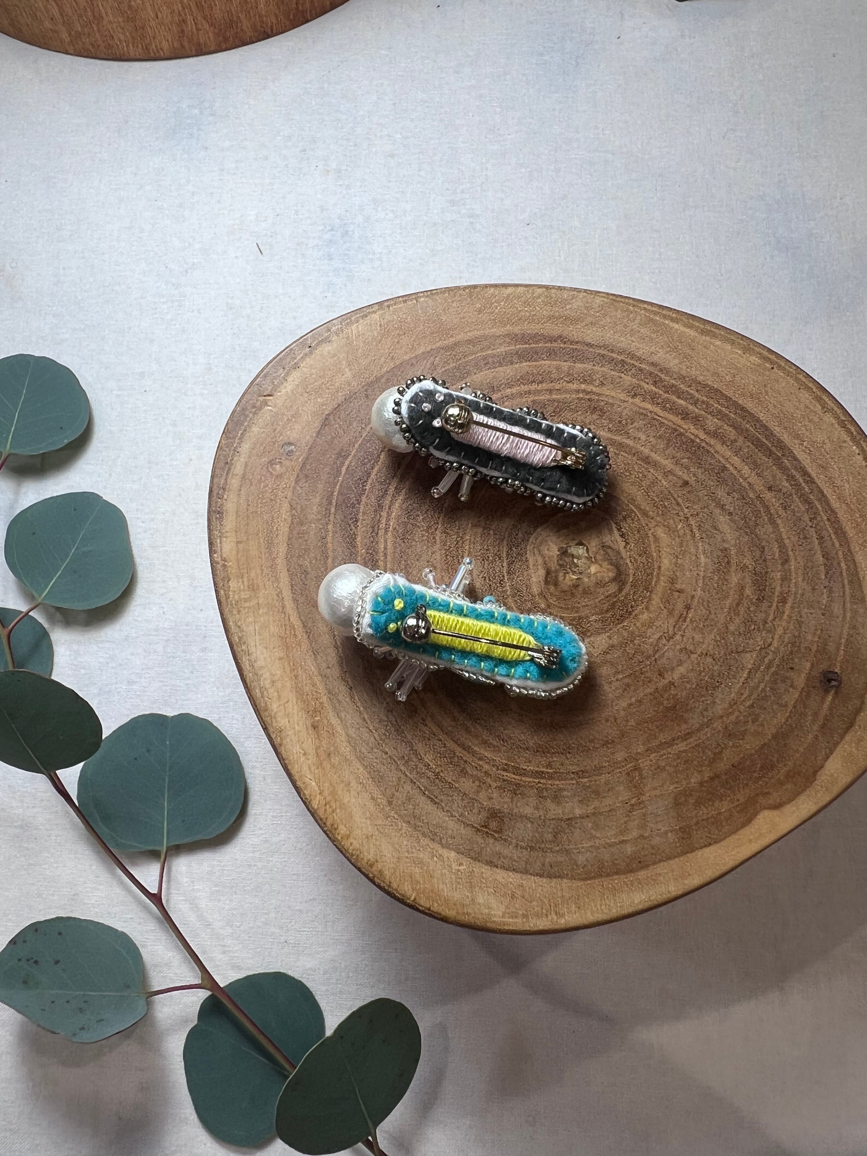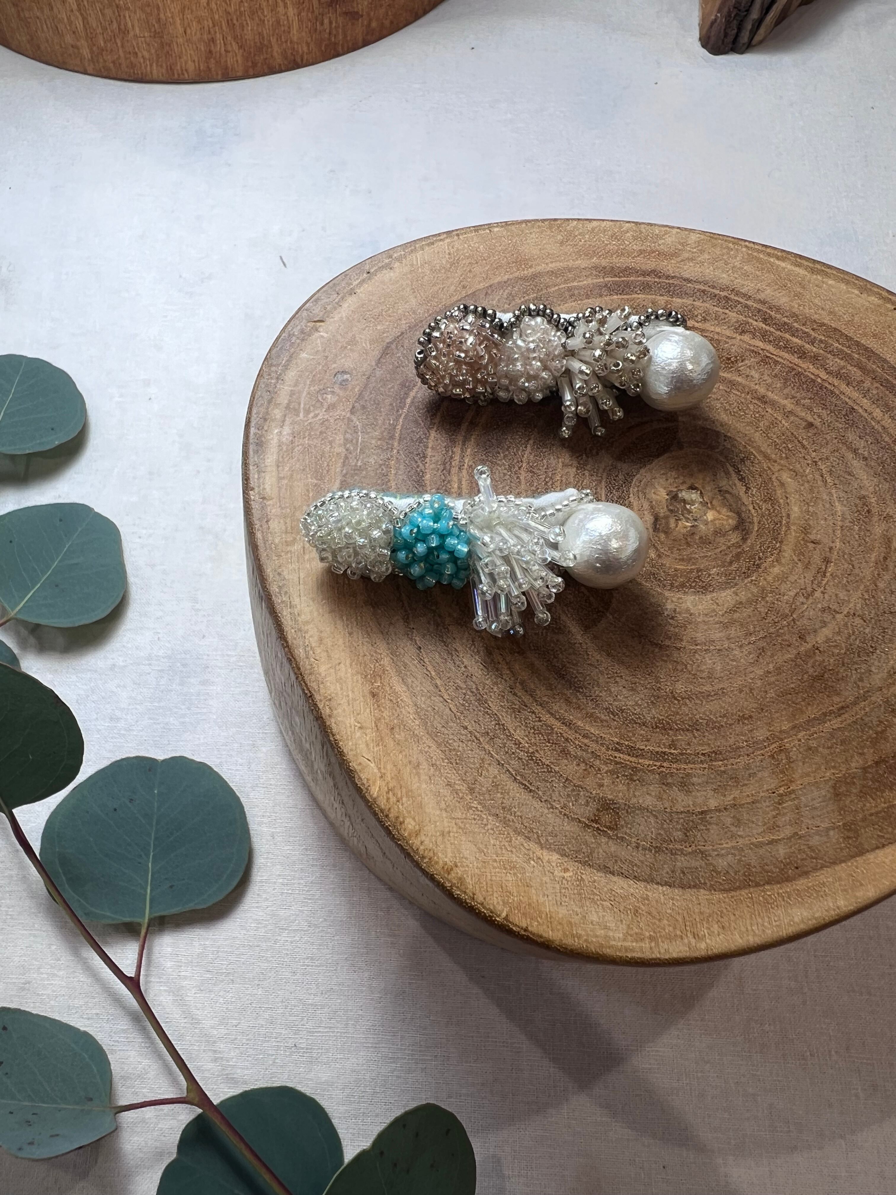 コットンパールとビーズ刺繍を使用したスティック ブローチは、洗練されたデザインが魅力です!お洋服や帽子、バッグなどにさりげなく添えていただければ、シンプルながらも個性的なアクセントを加えることができます。特別な日のお出かけや、デイリーコーディネートにもぴったりなアイテムです。他のアクセサリーとの重ね付けも楽しめるので、多彩なスタイリングが可能です。