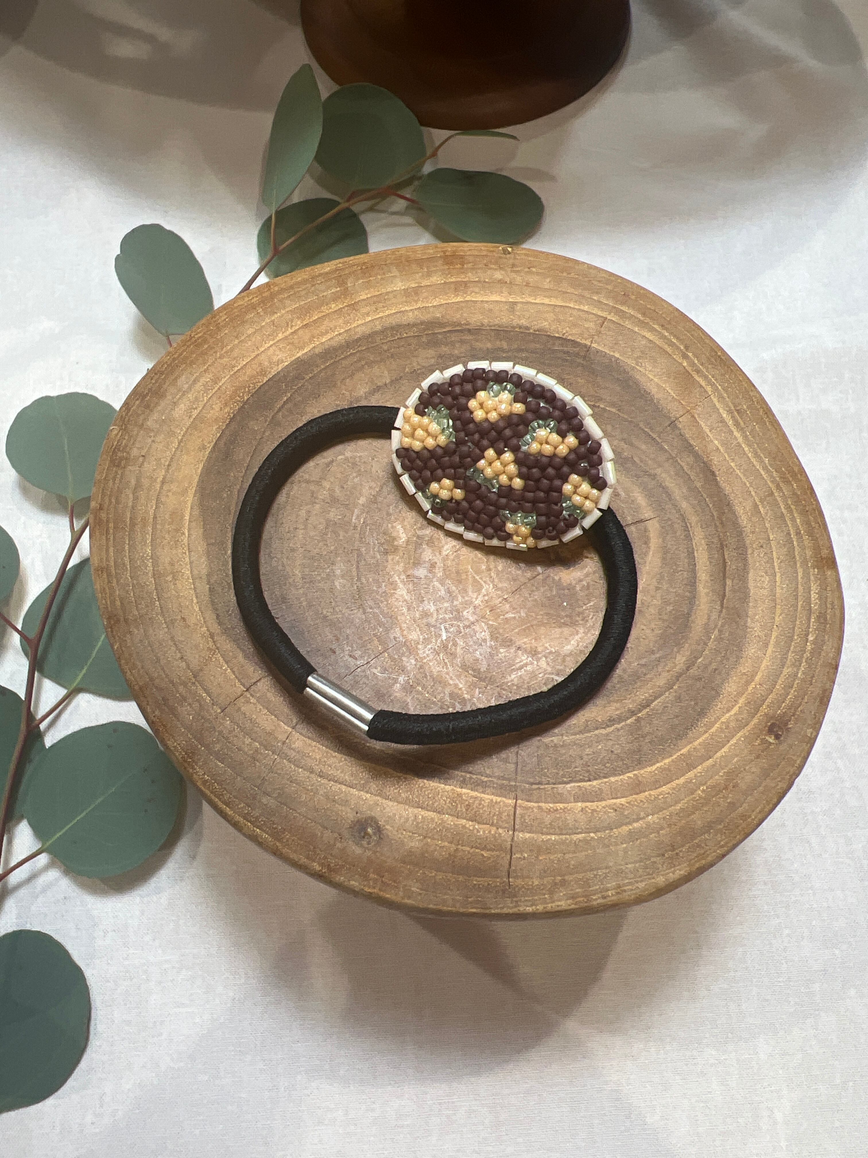深みのある焦茶色のビーズが施されたヘアゴムは、シンプルながらも存在感を放つ魅力的なアイテムです!普段使いのおしゃれにぴったりで、様々なスタイリングに華やかさをプラスしてくれます。また、他のヘアアクセサリーとの重ね付けも楽しむことができ、あなた自身の個性を引き立てるスタイルを実現します。