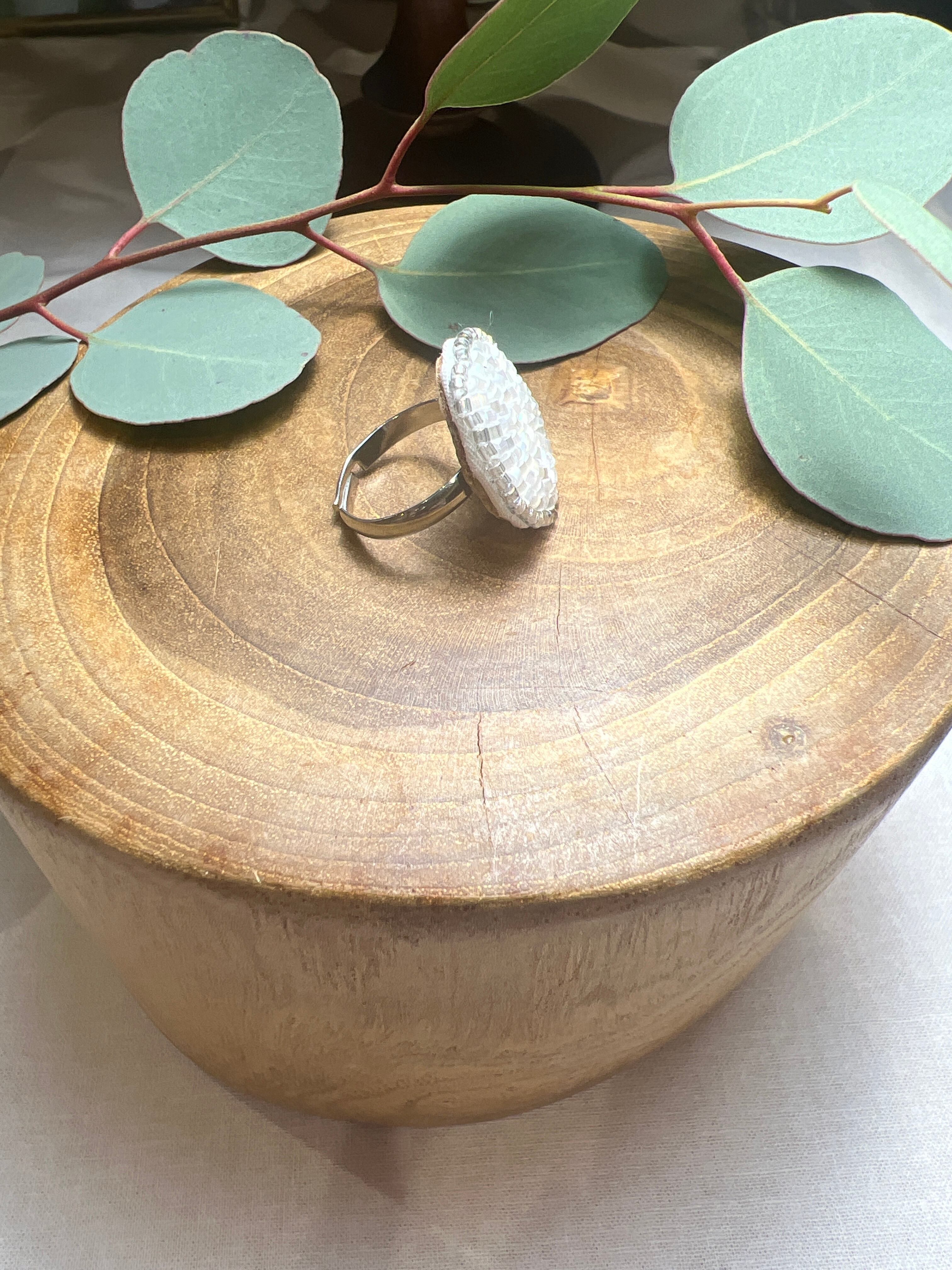 ビーズ刺繍のサージカルステンレスリングは、手作りの温もりを感じさせる輝かしいアクセサリーです!シルクビーズのキラキラとしたデザインは、シンプルなスタイルにも華やかさを添え、日々のコーディネートに生き生きとした印象を与えます。