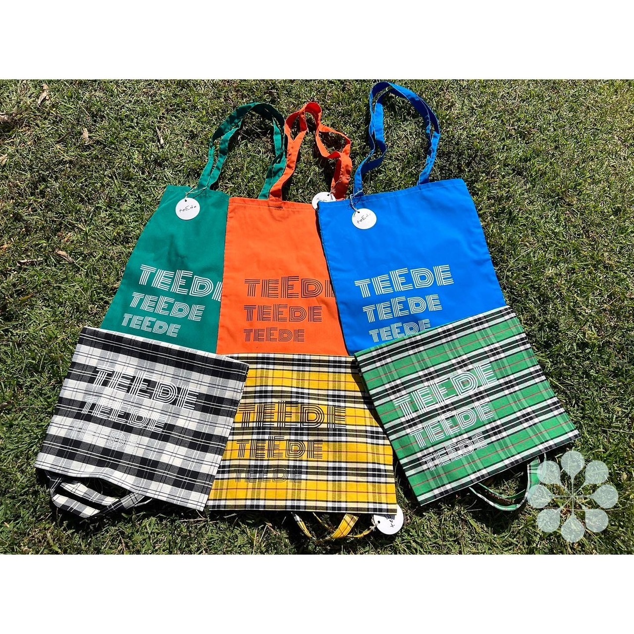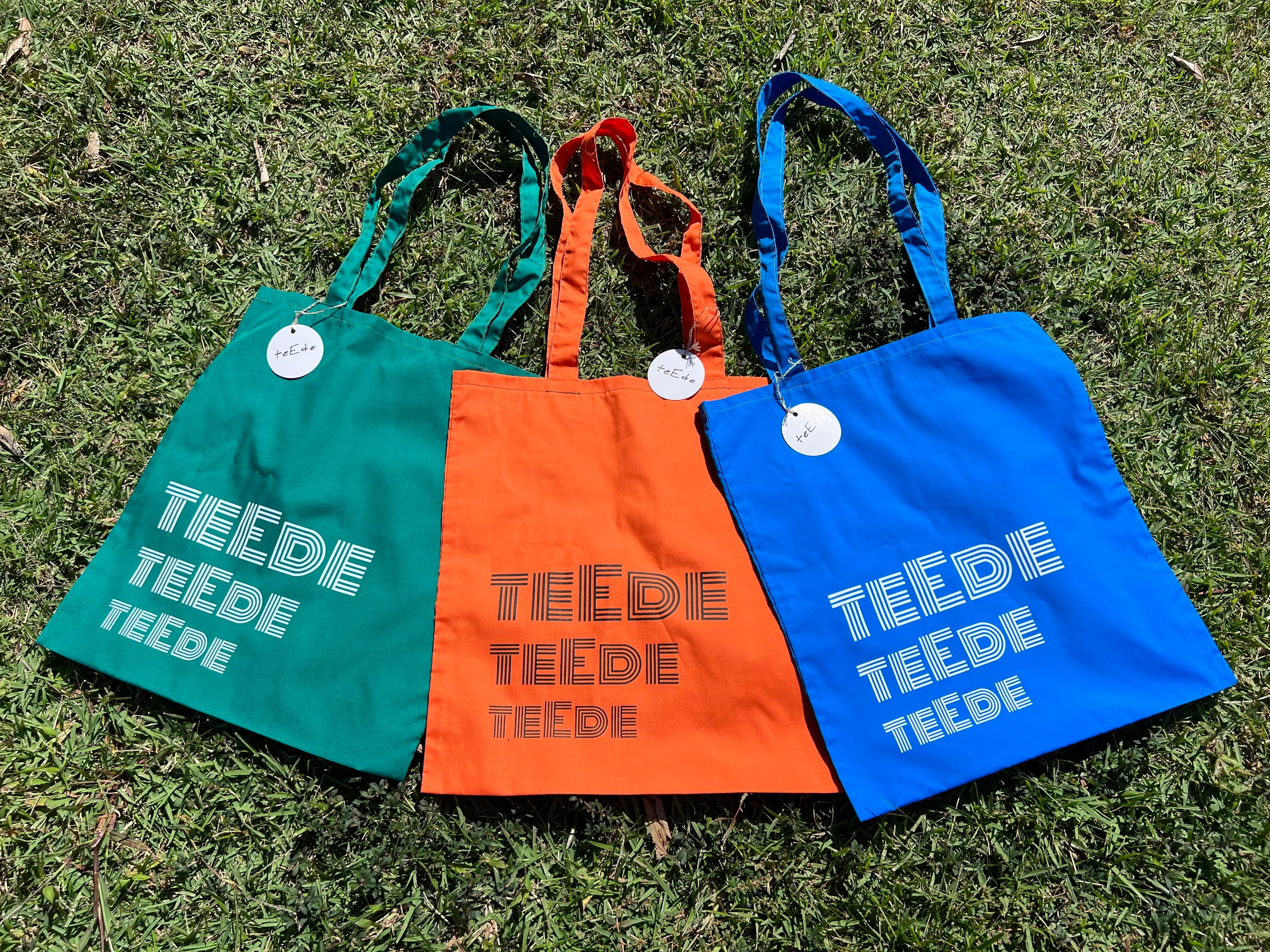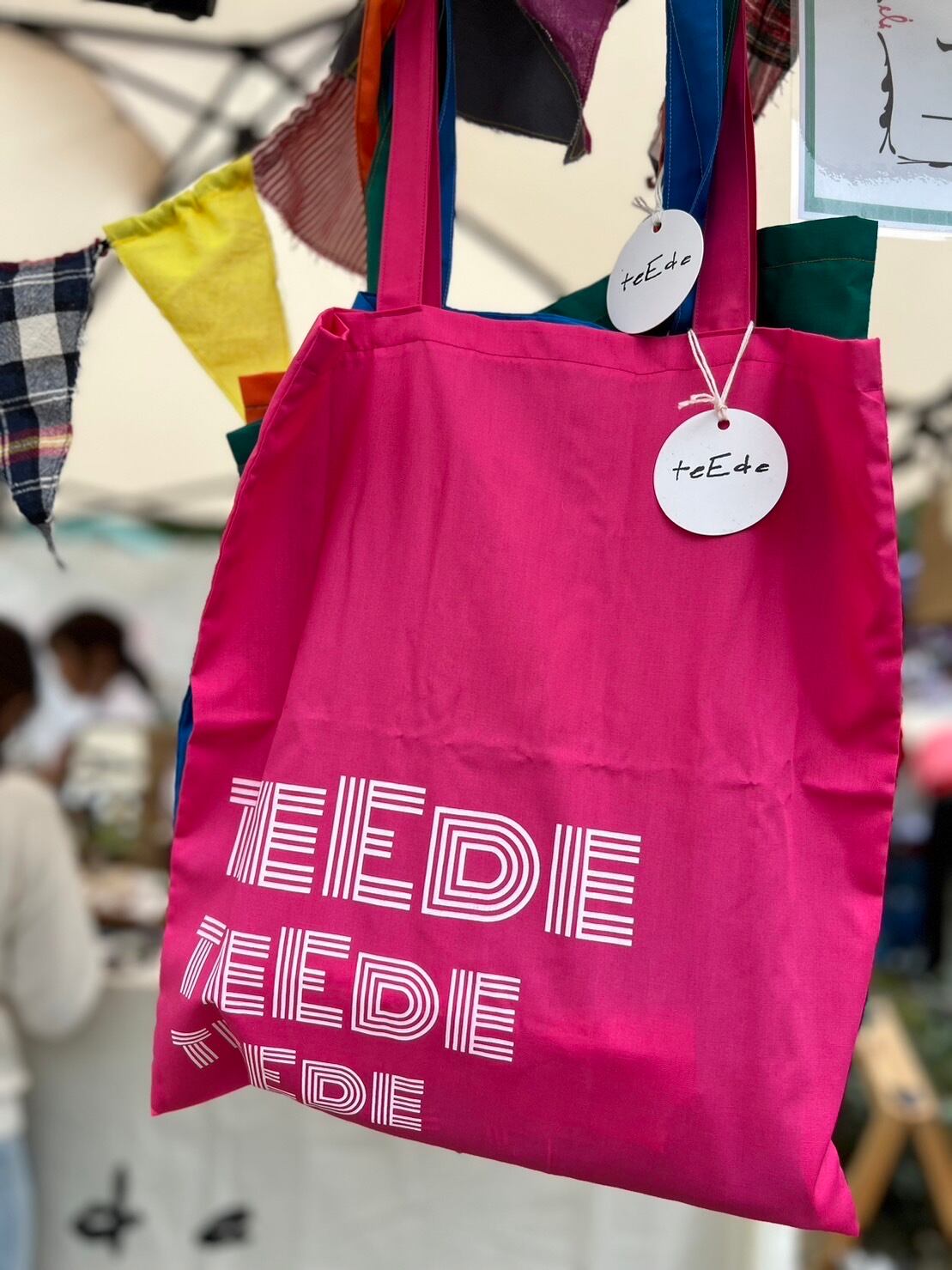 シンプルな形で、ポップなカラーとオリジナルロゴがかわいいトートバッグです。