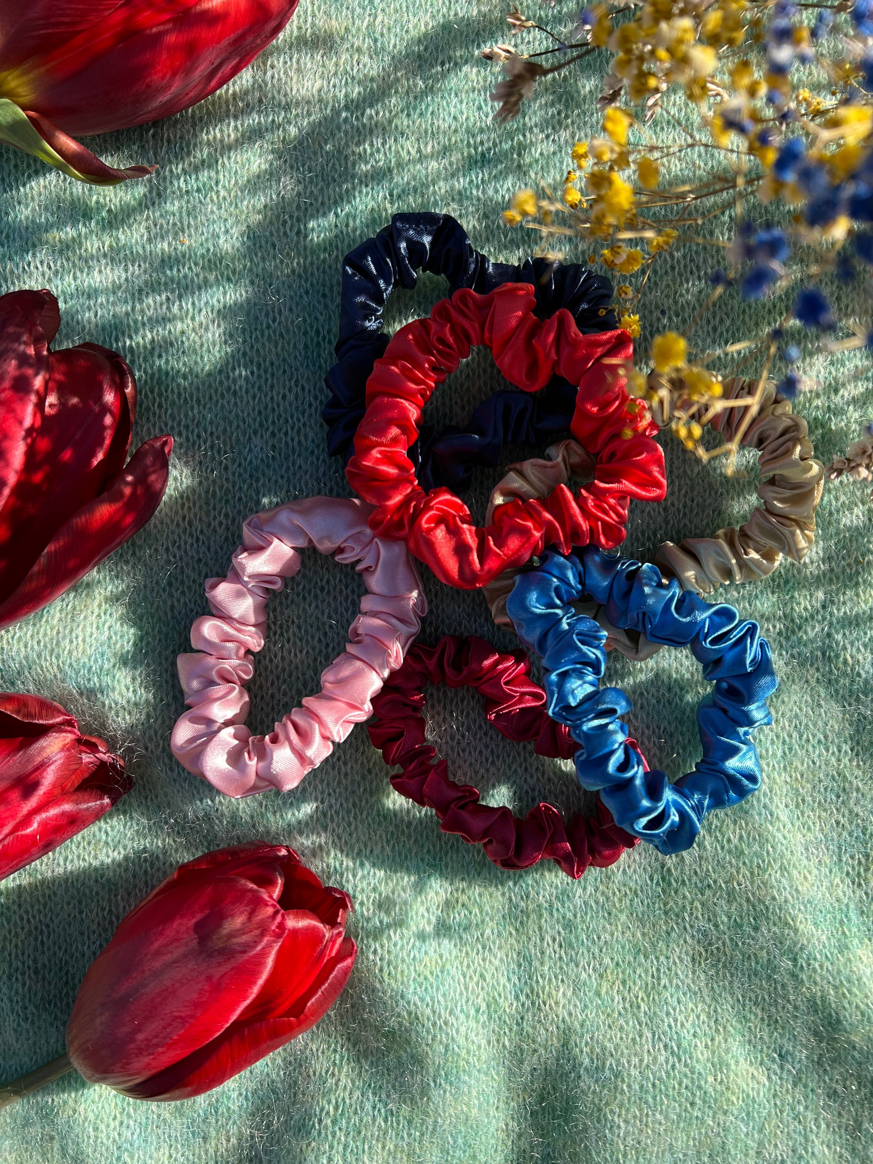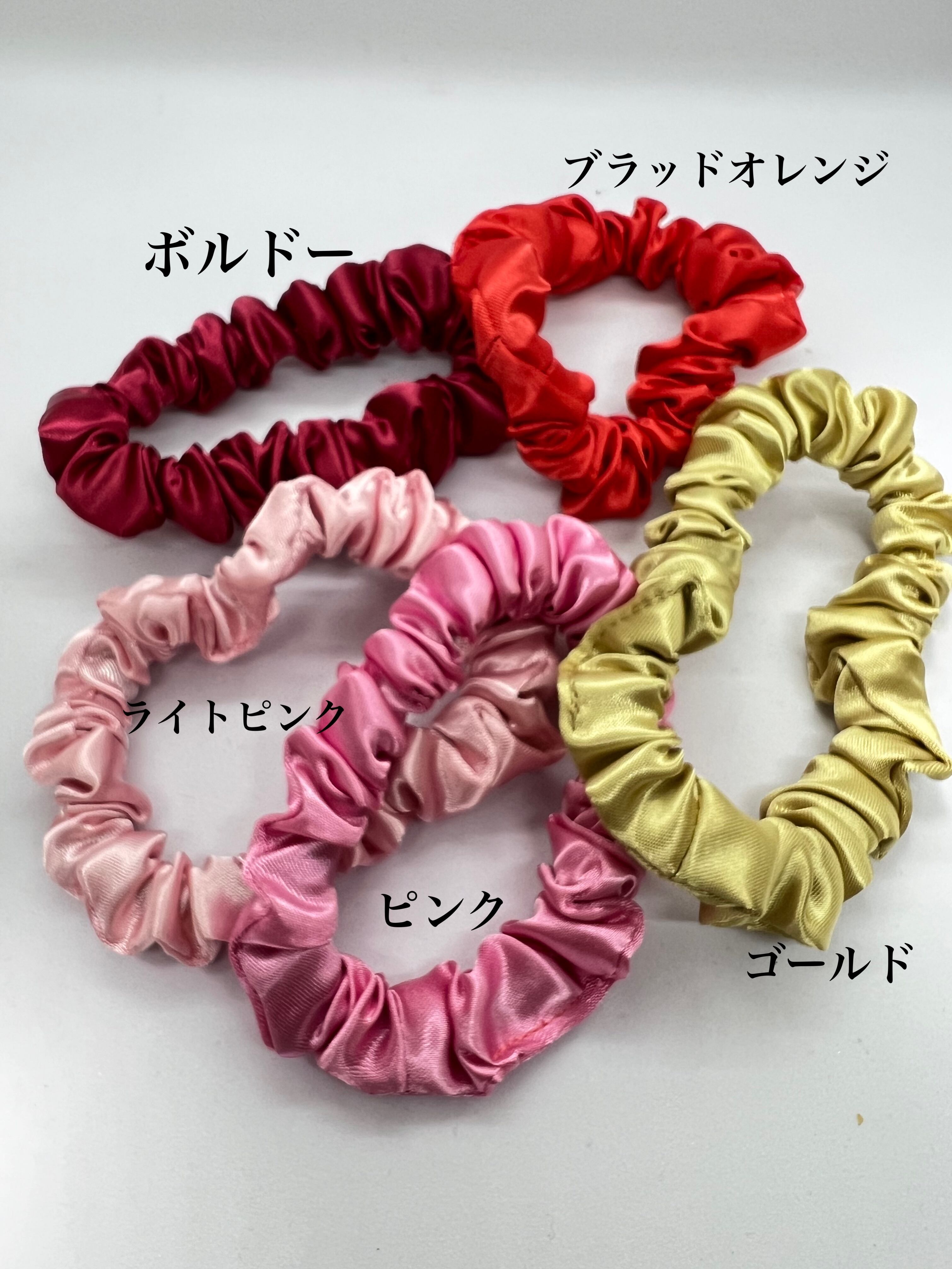 上質なサテン地の細シュシュ。