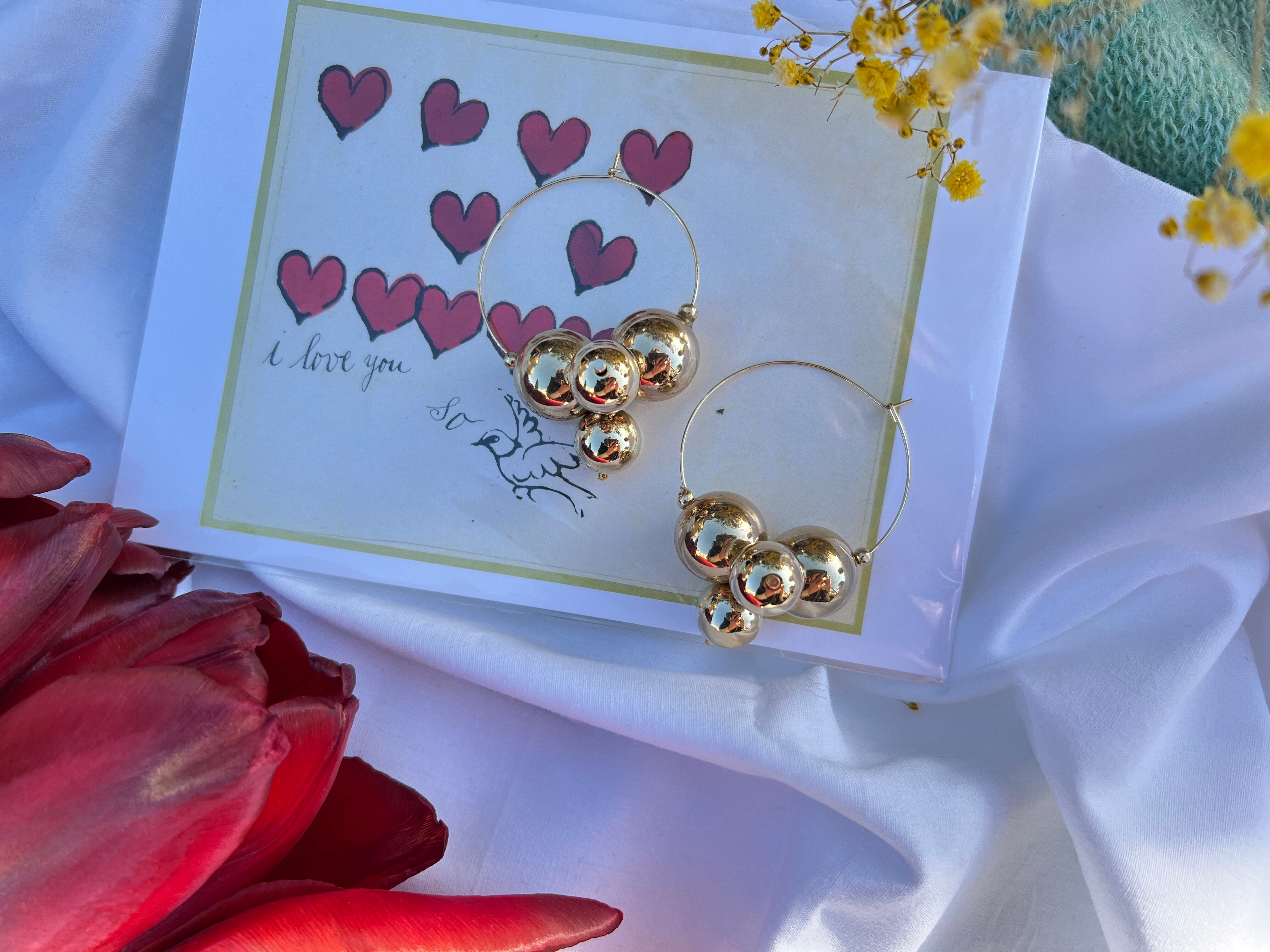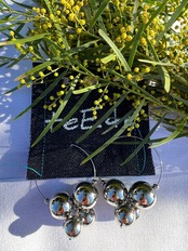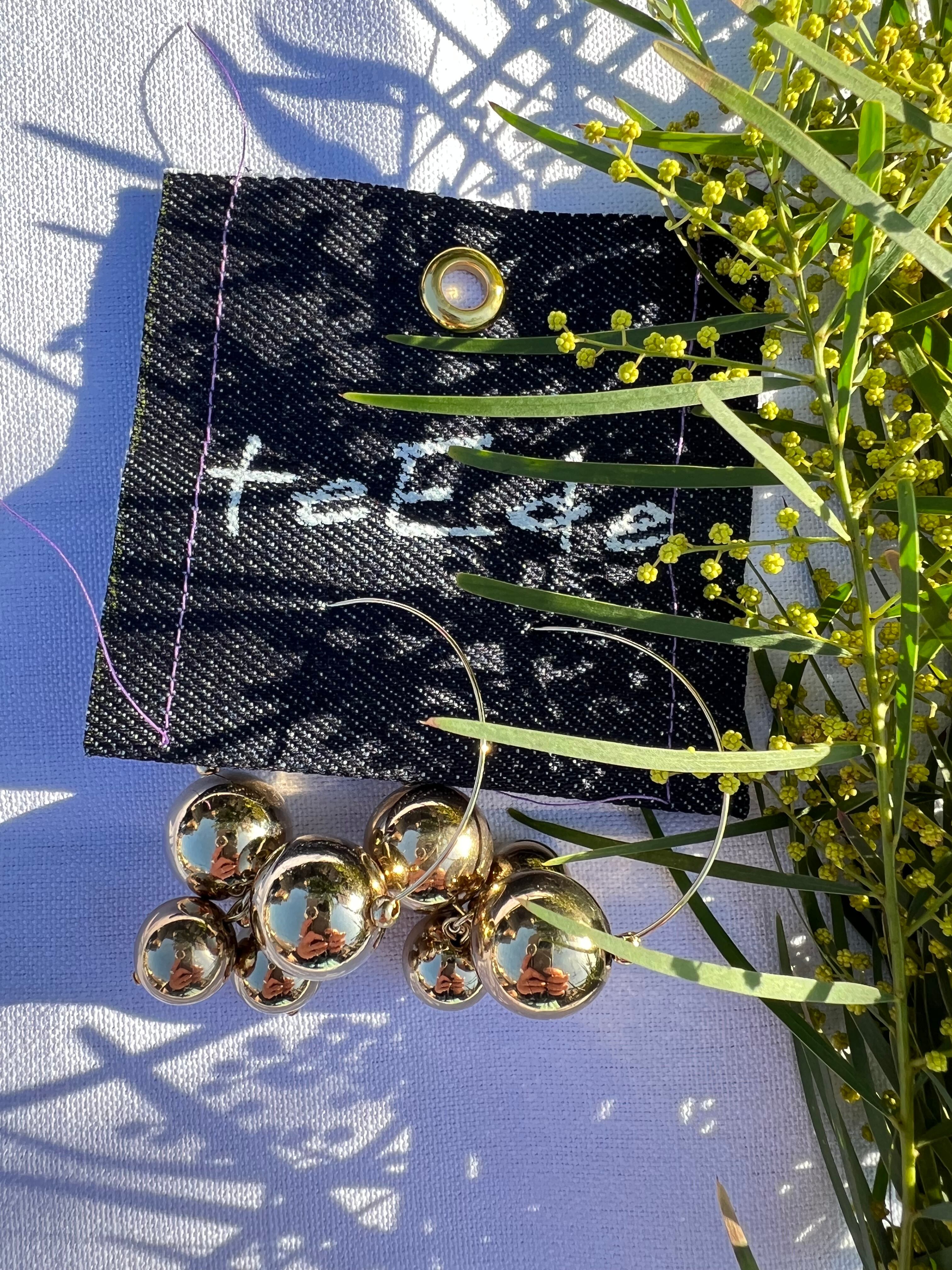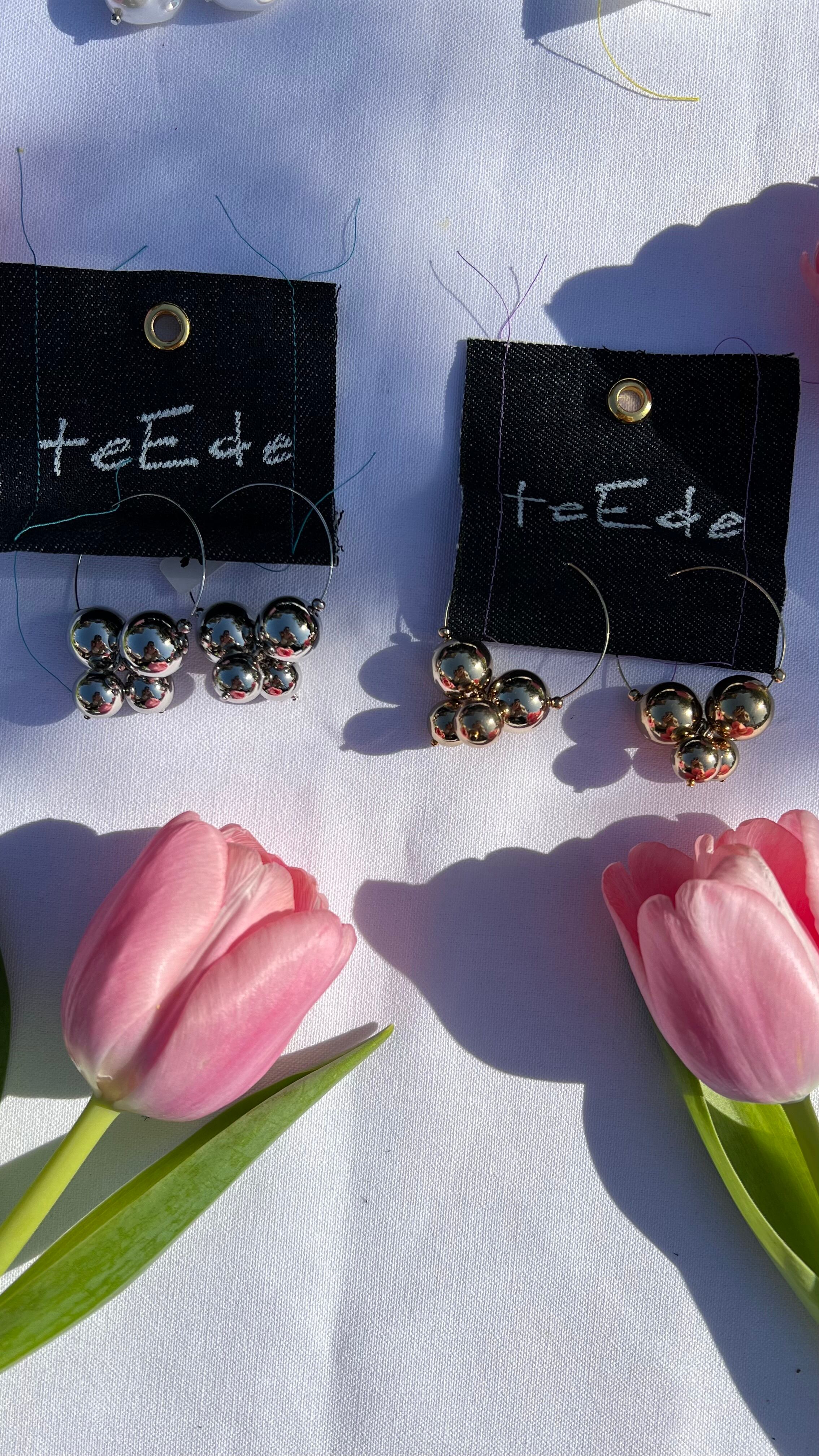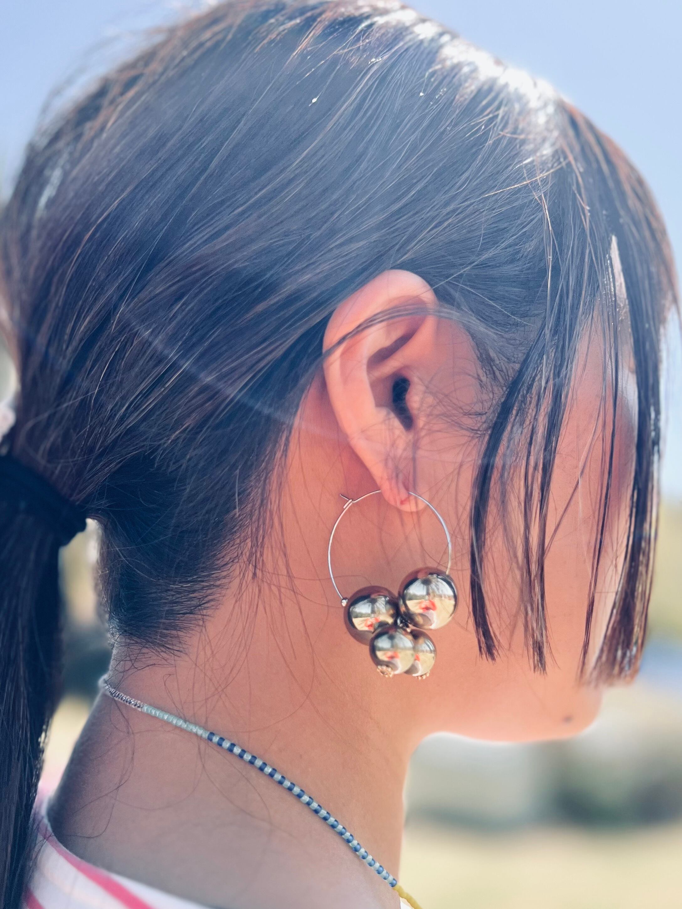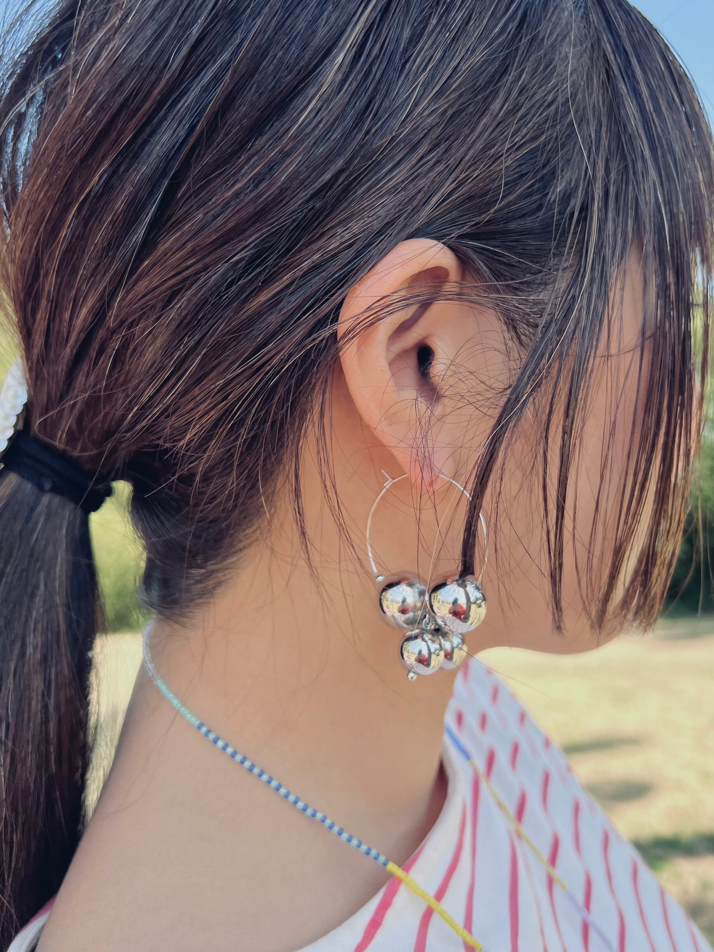 メタルボールを組み合わせた、存在感のあるデザインのピアスです。
