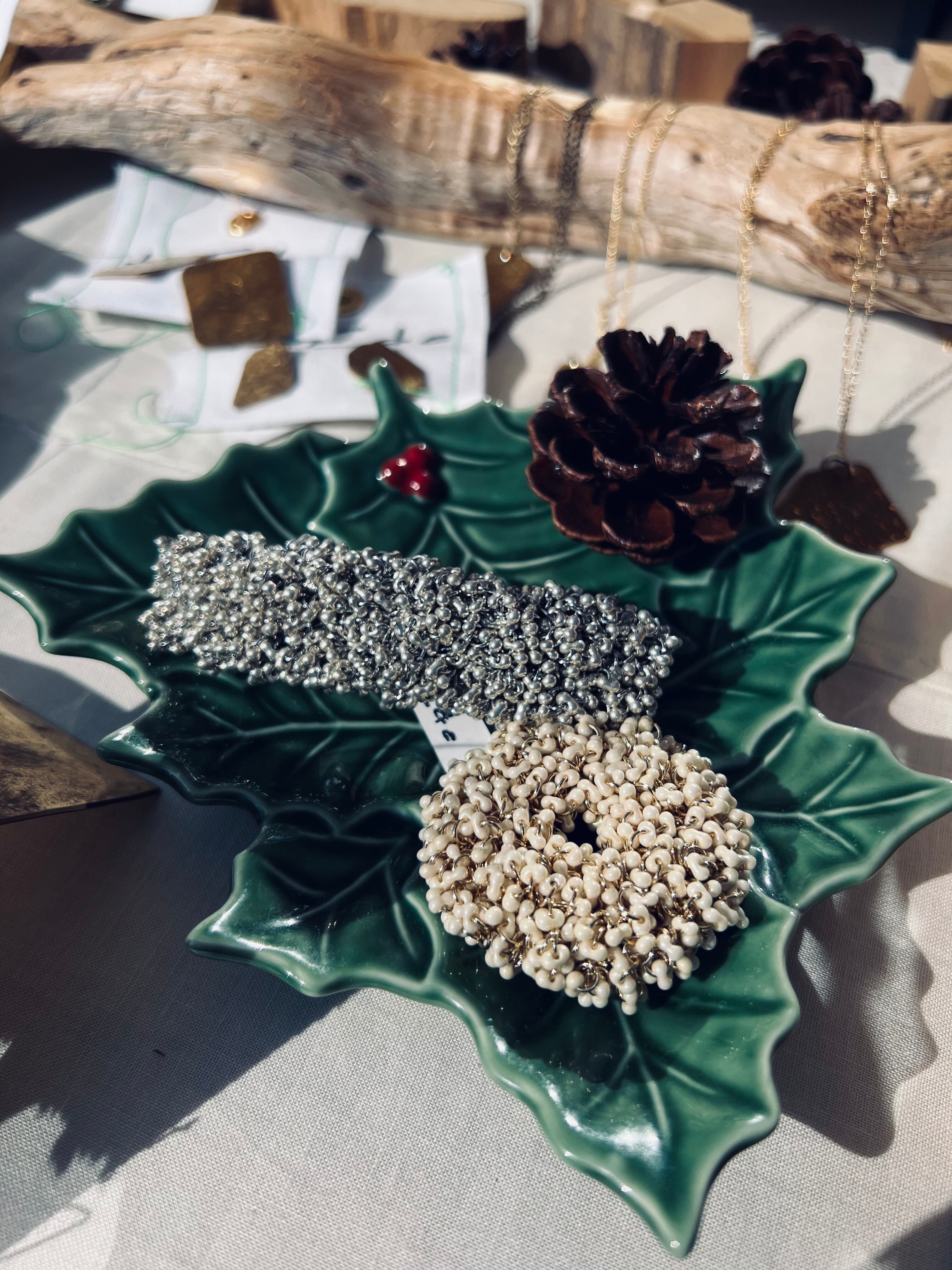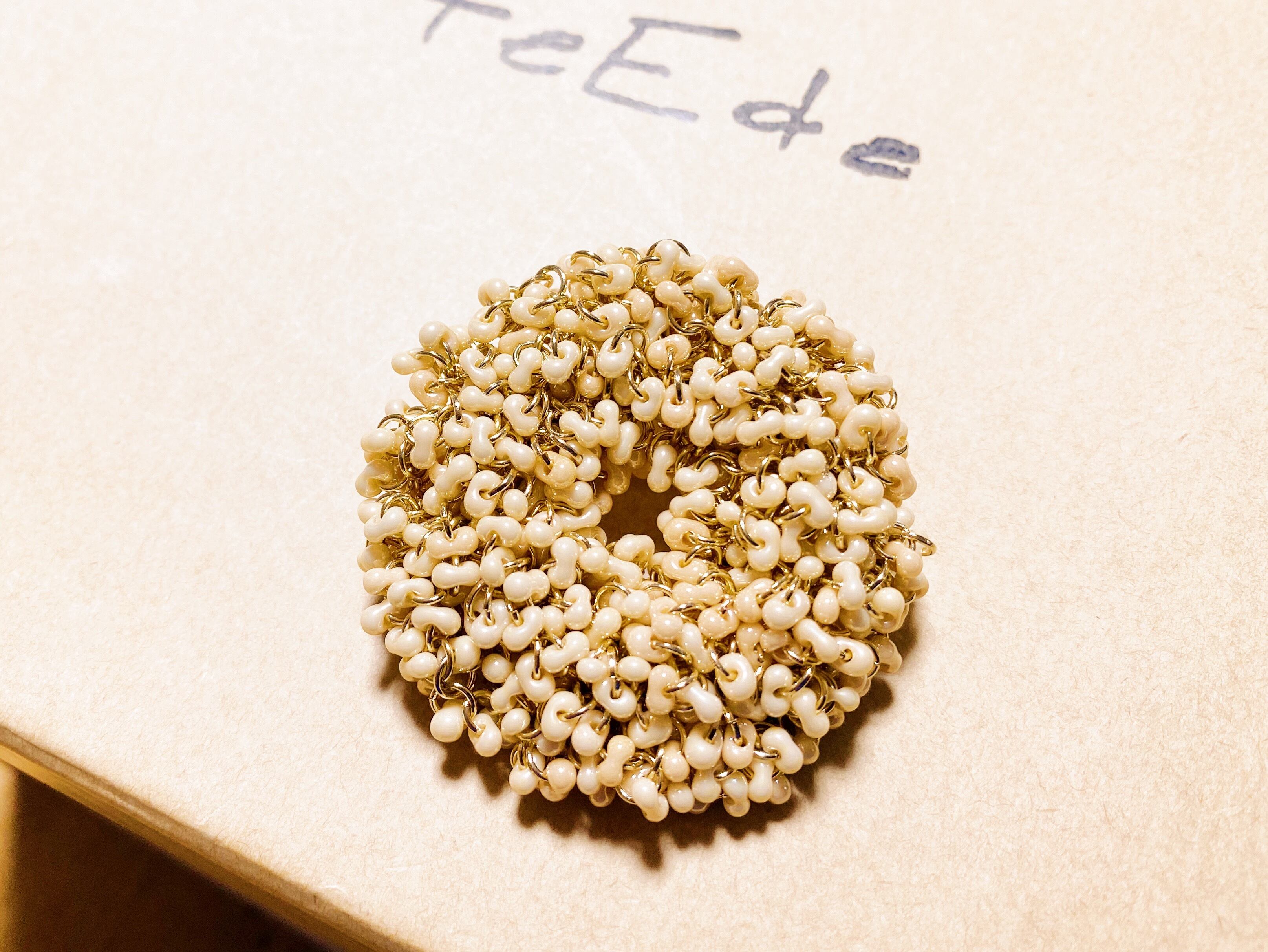 小さなファルファーレビーズのリースデザインは、上品で可愛らしい印象。