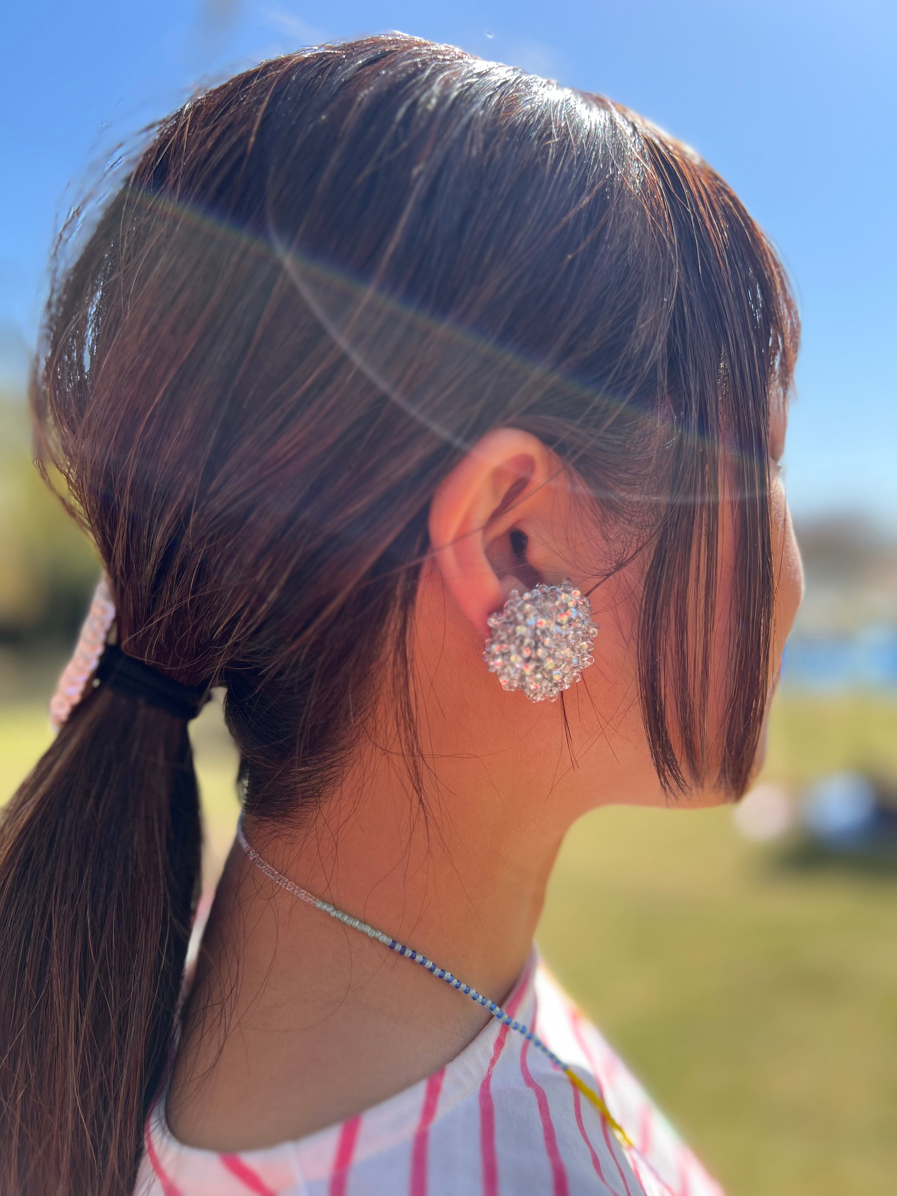 耳元で揺らめくキラキラの輝きが目を引きます。カジュアルにもフェミニンにも、様々なスタイルに合わせられるデザインです。