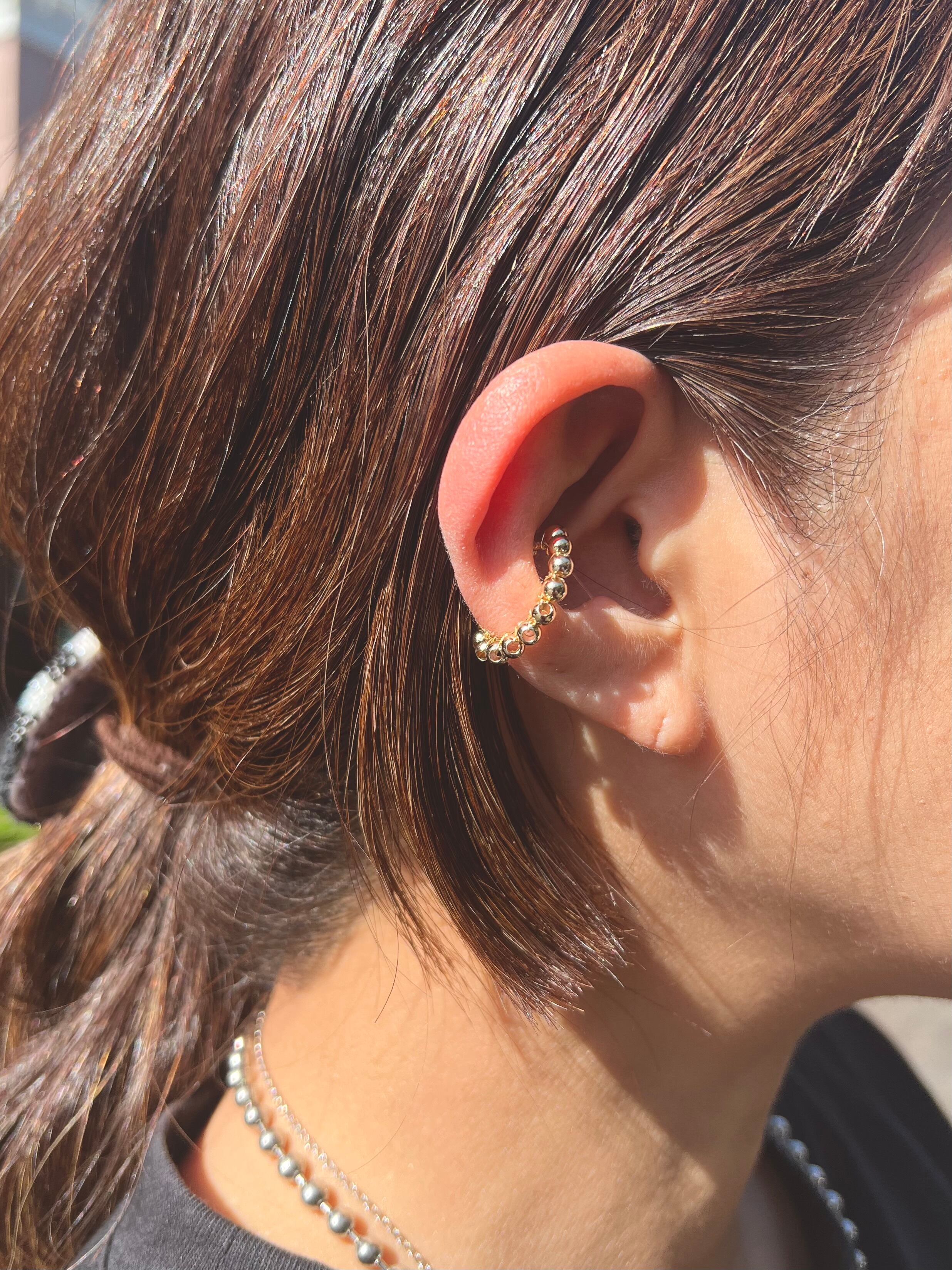 イヤーカフなのでピアスの穴がなくても耳に挟むだけでつけられます。