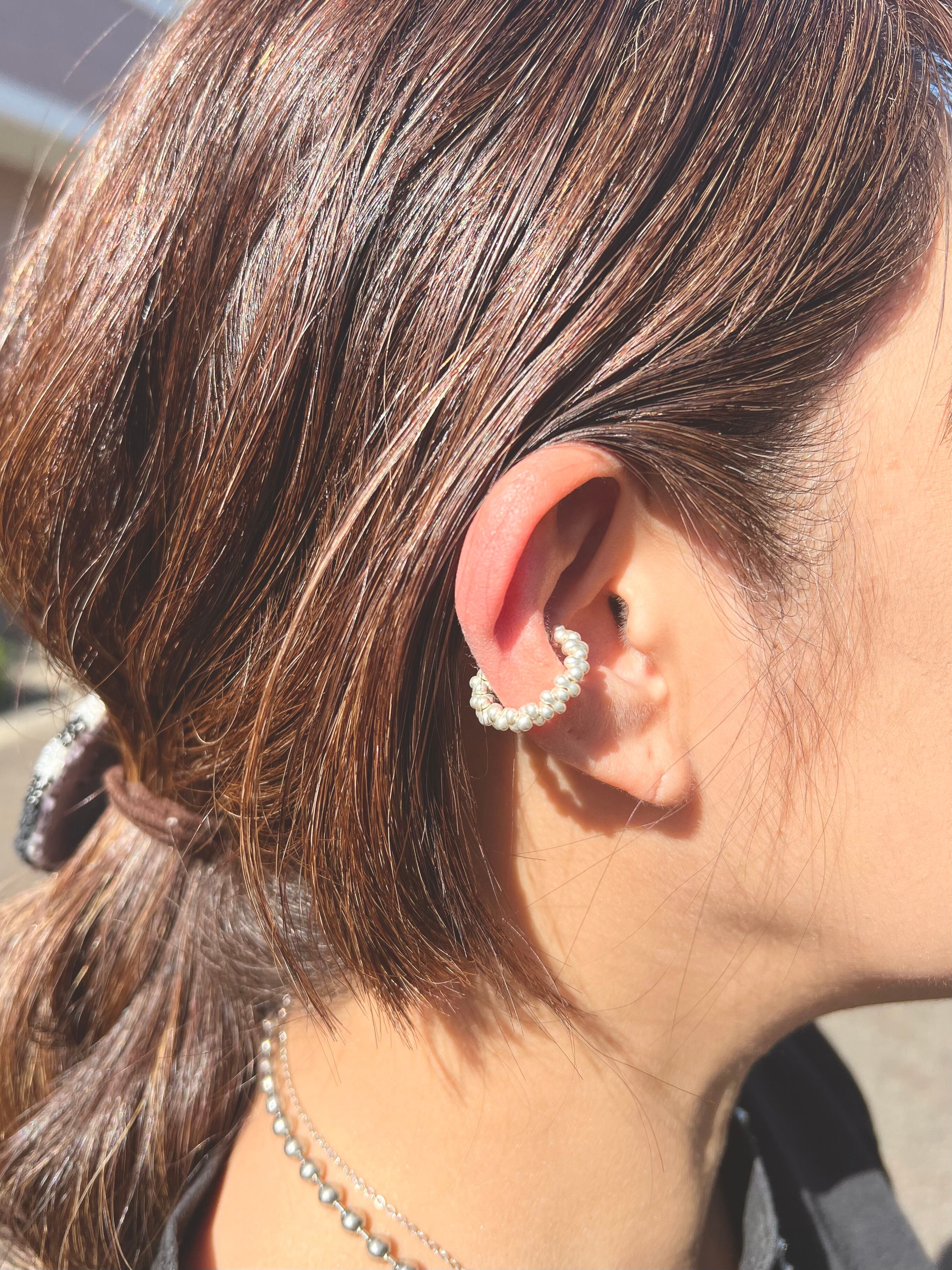 イヤーカフなのでピアスの穴がなくても耳に挟むだけでつけられます。