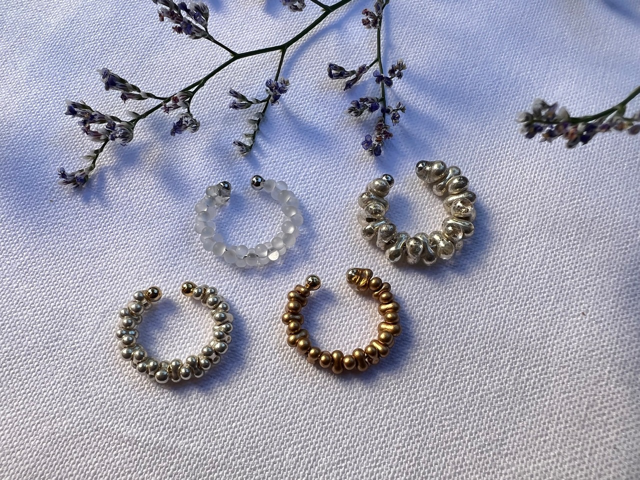 いくつか重ね付けしても、ピアスやイヤリングと合わせてみても、ポイントでひとつだけ付けてもかわいいです。