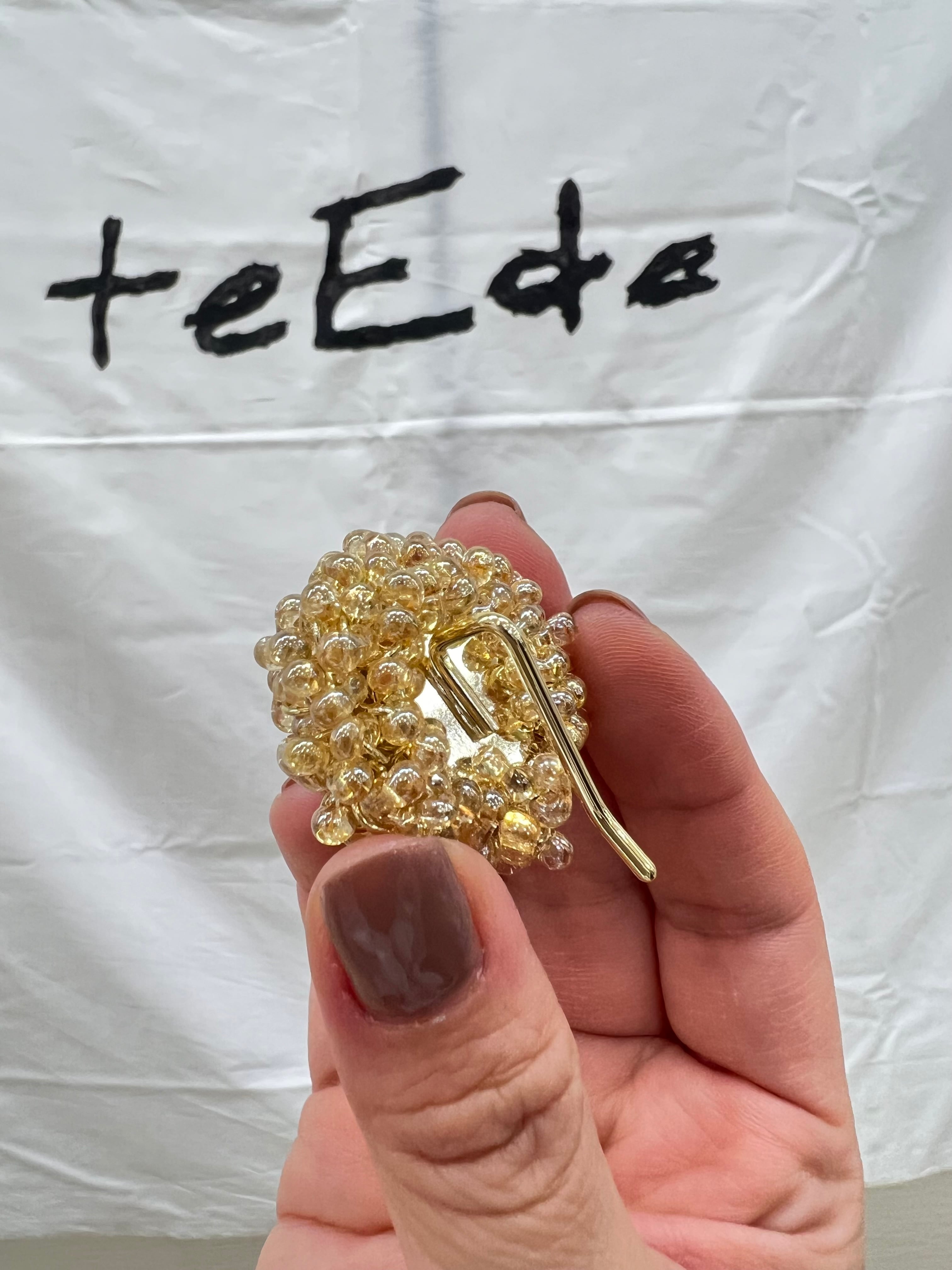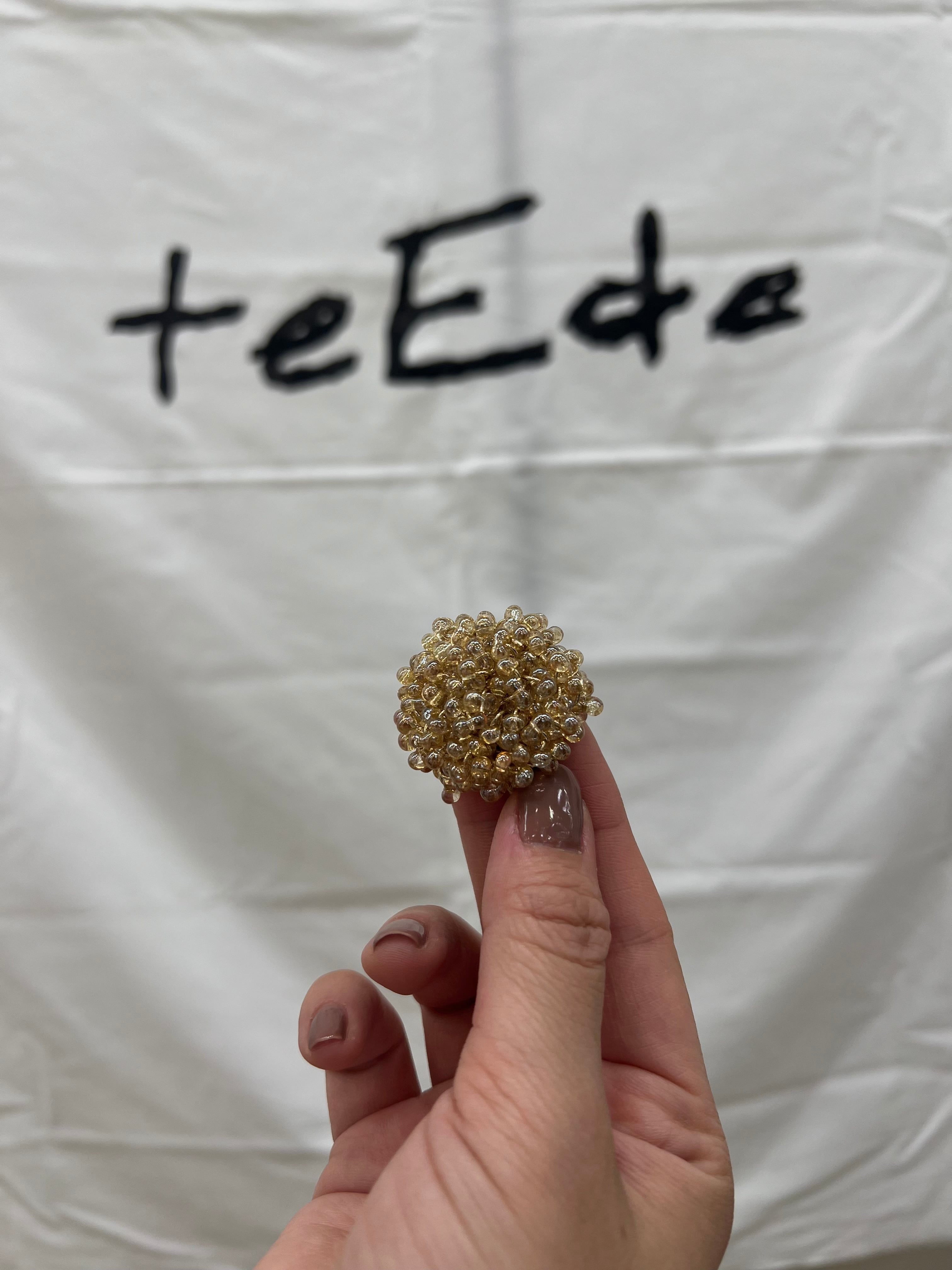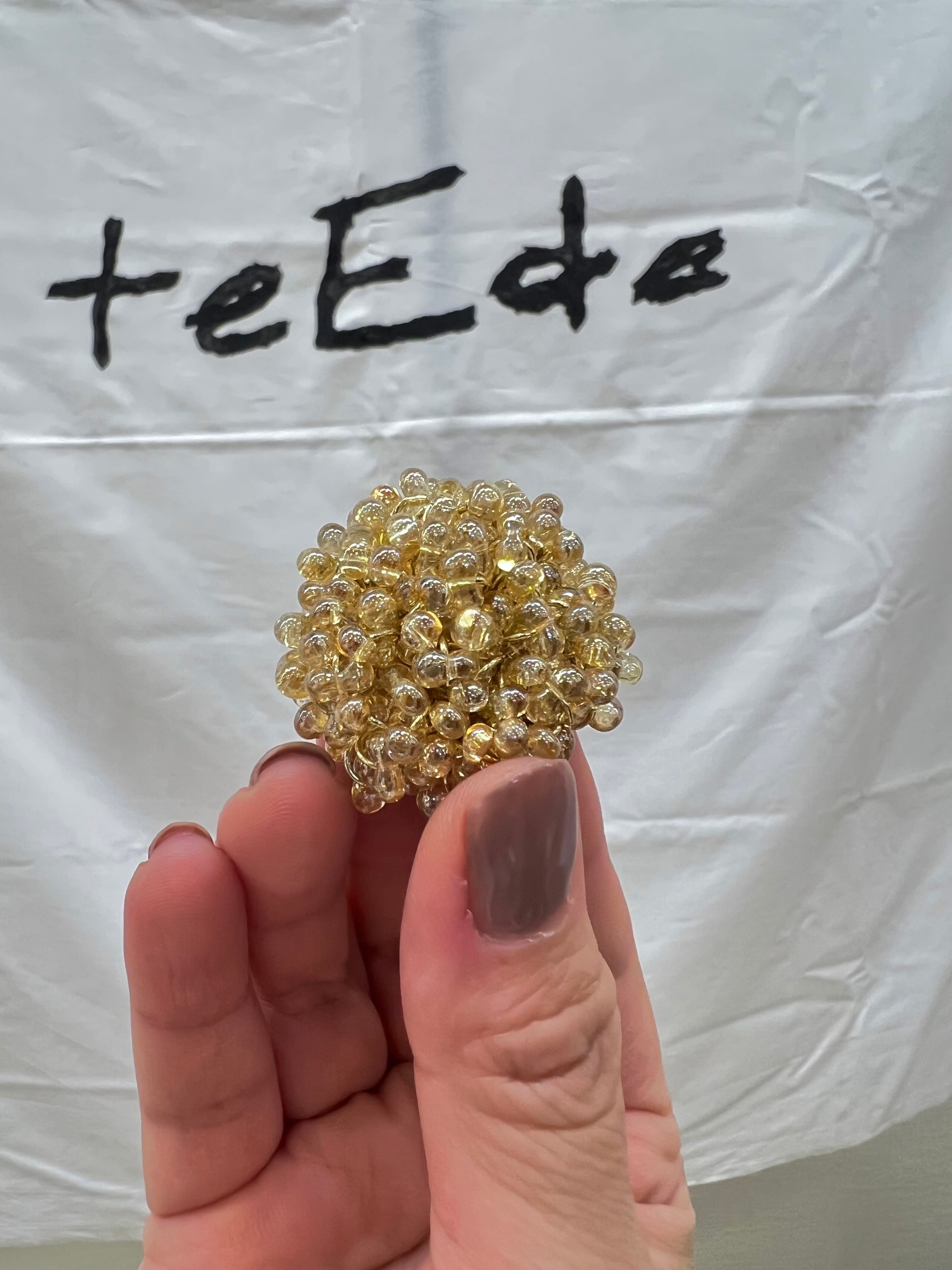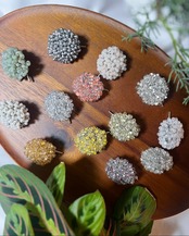 ぷっくりとしたビーズが目を惹き、動くとつぶつぶが少しだけ揺れて光の反射できらめきます。