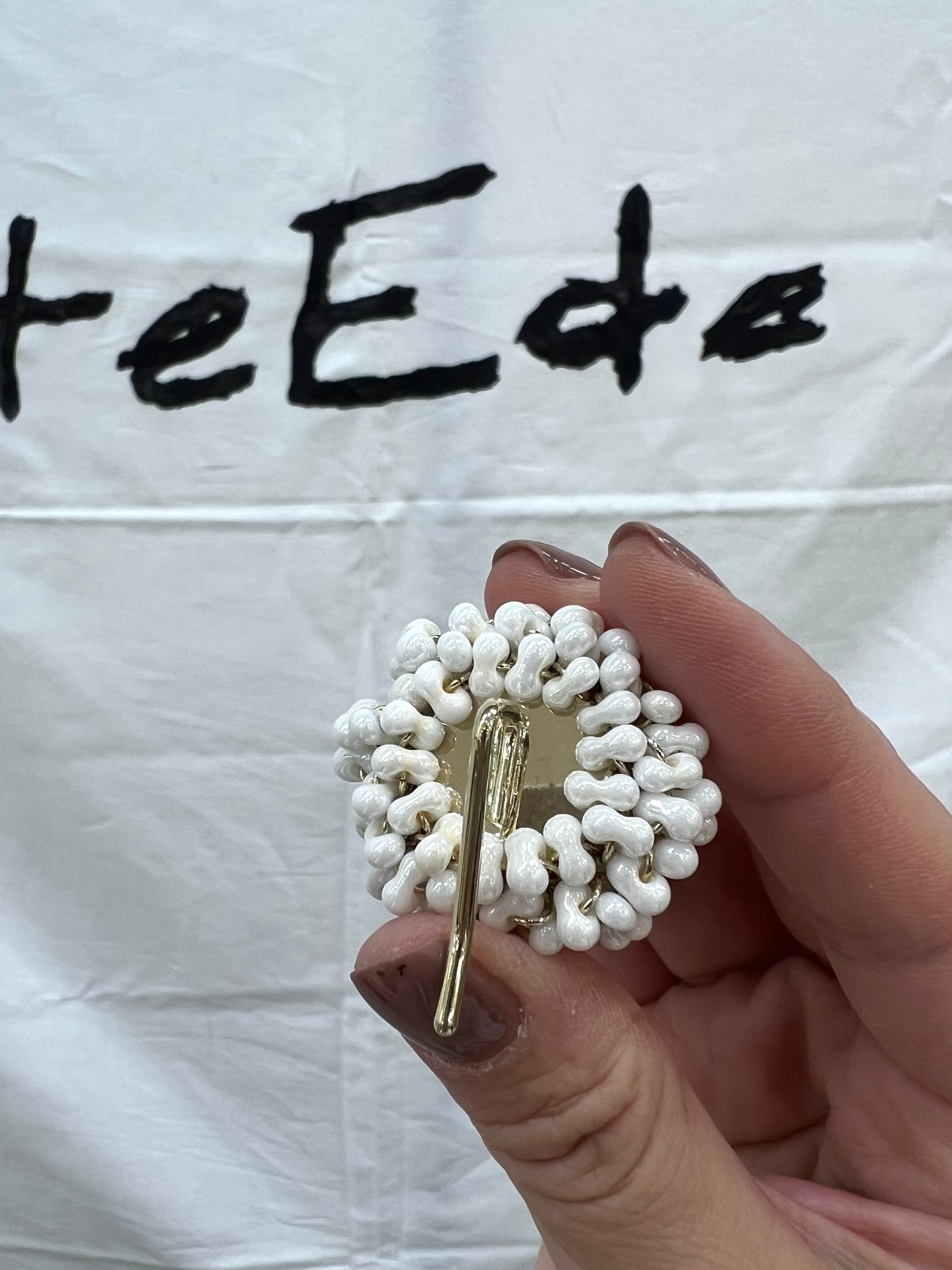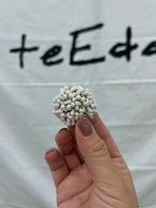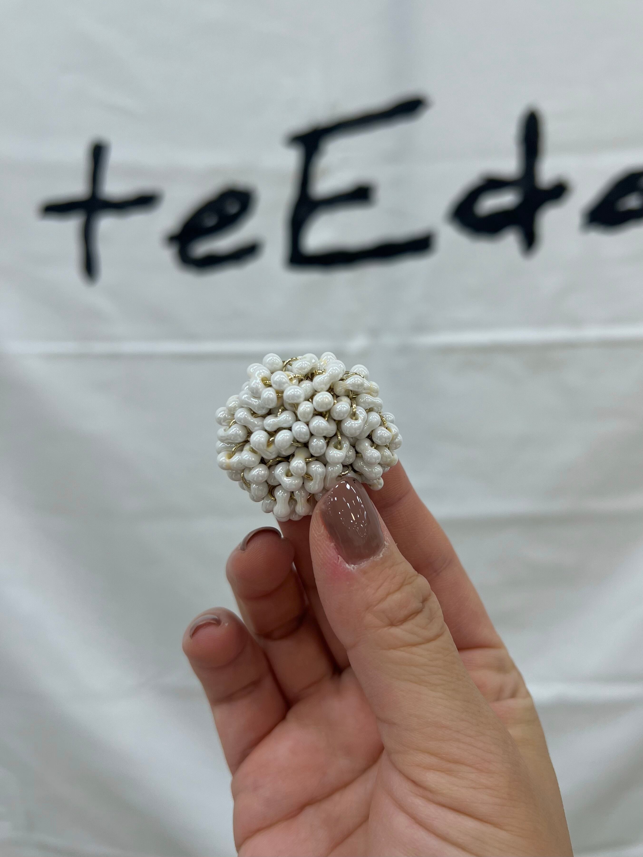 ぷっくりとしたビーズが目を惹き、動くとつぶつぶが少しだけ揺れて光の反射できらめきます。