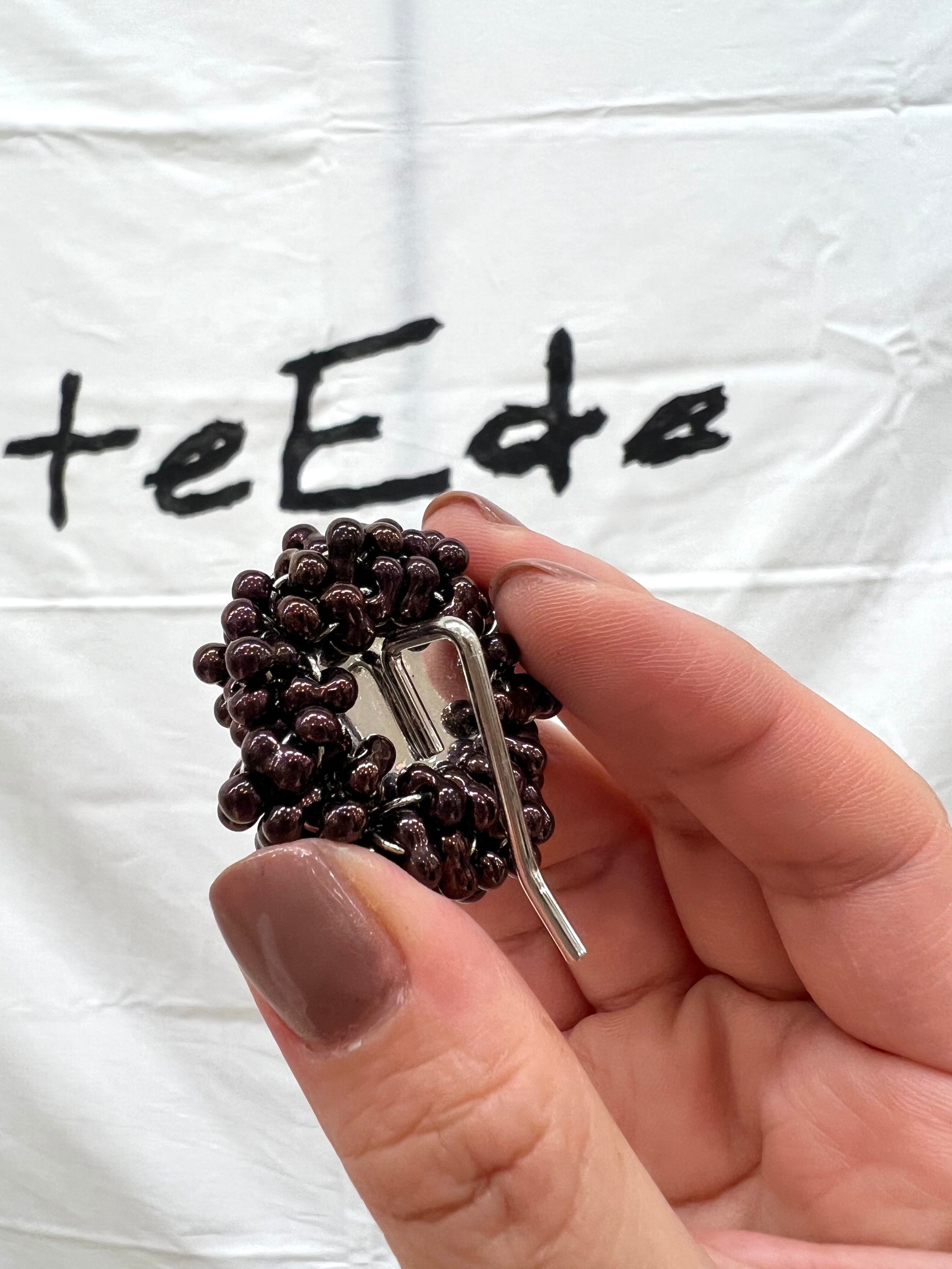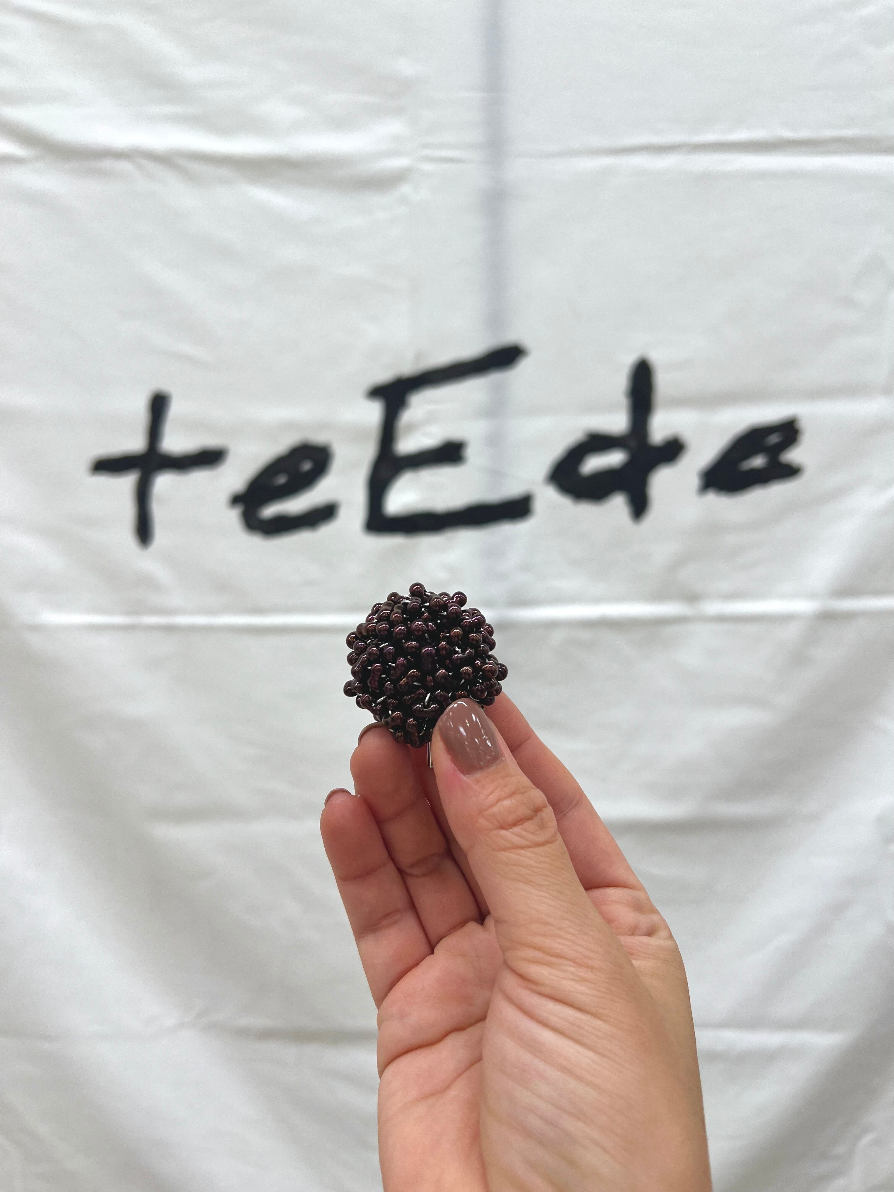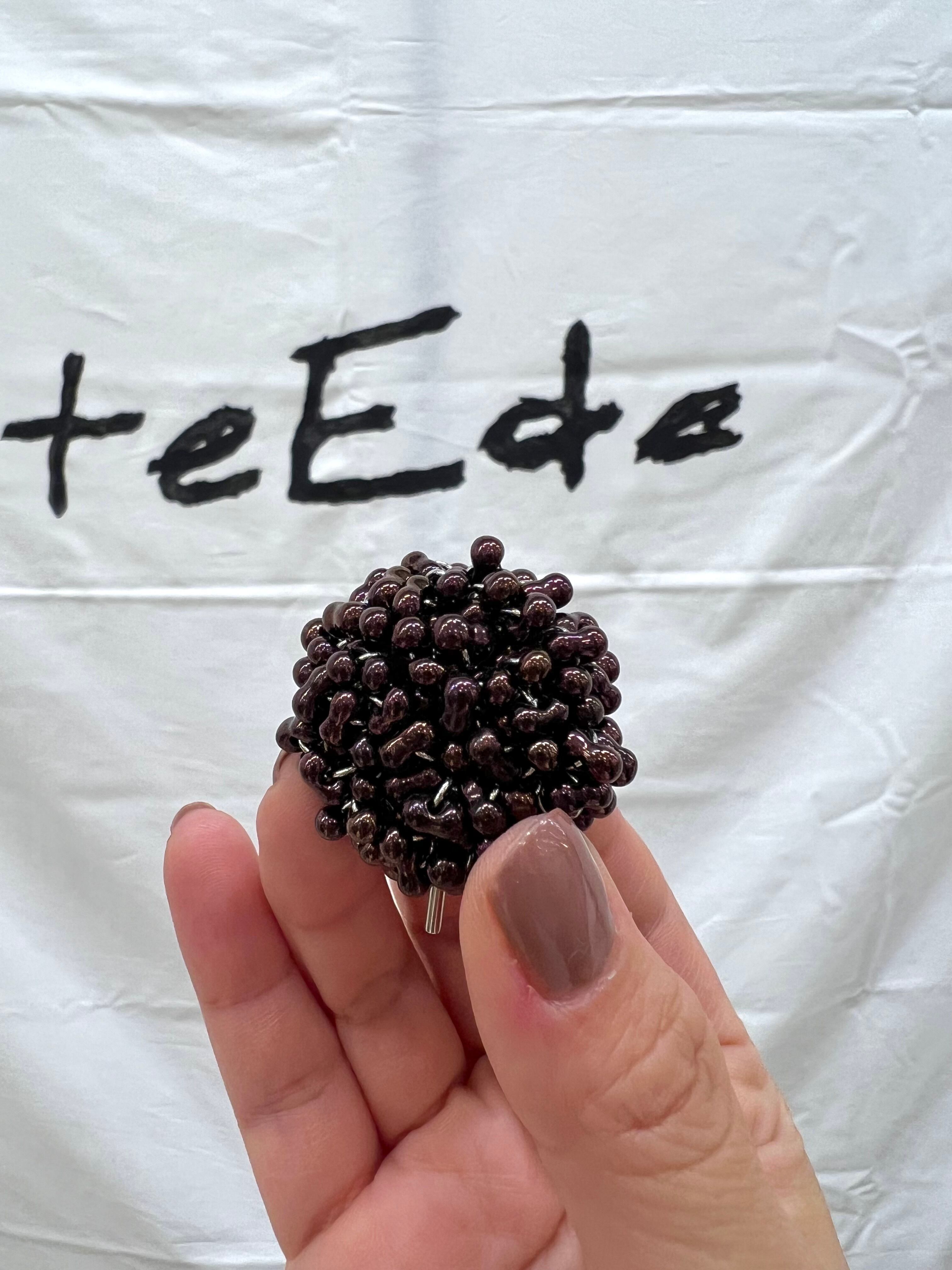 ぷっくりとしたビーズが目を惹き、動くとつぶつぶが少しだけ揺れて光の反射できらめきます。