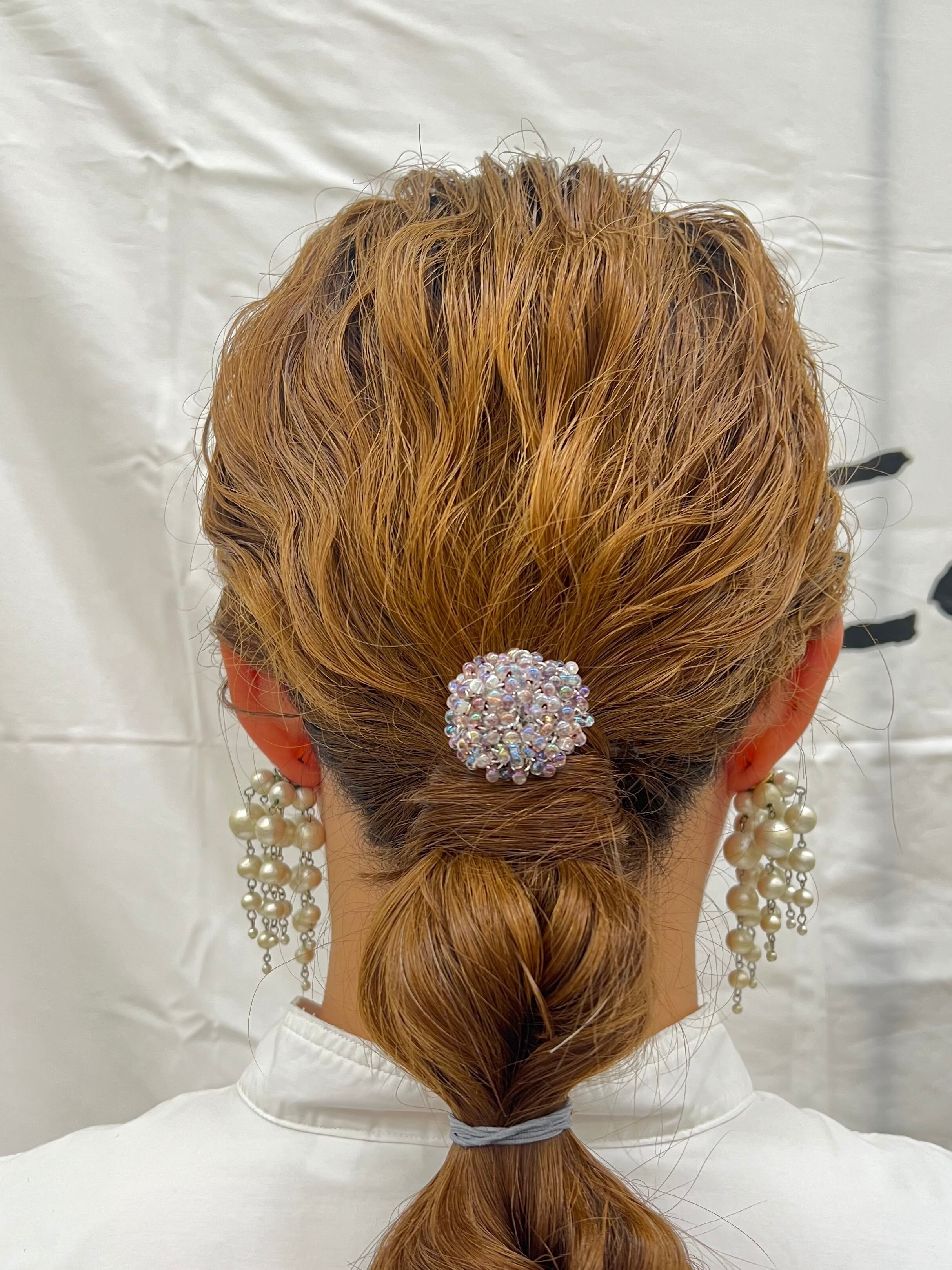 シンプルなヘアスタイルもヘアアクセサリーがひとつあるだけで、華やかにこなれ見え♪